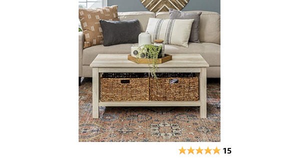 Amazon Com Lucas Transitional Coffee Table With Storage In White Oak Home Kitchen