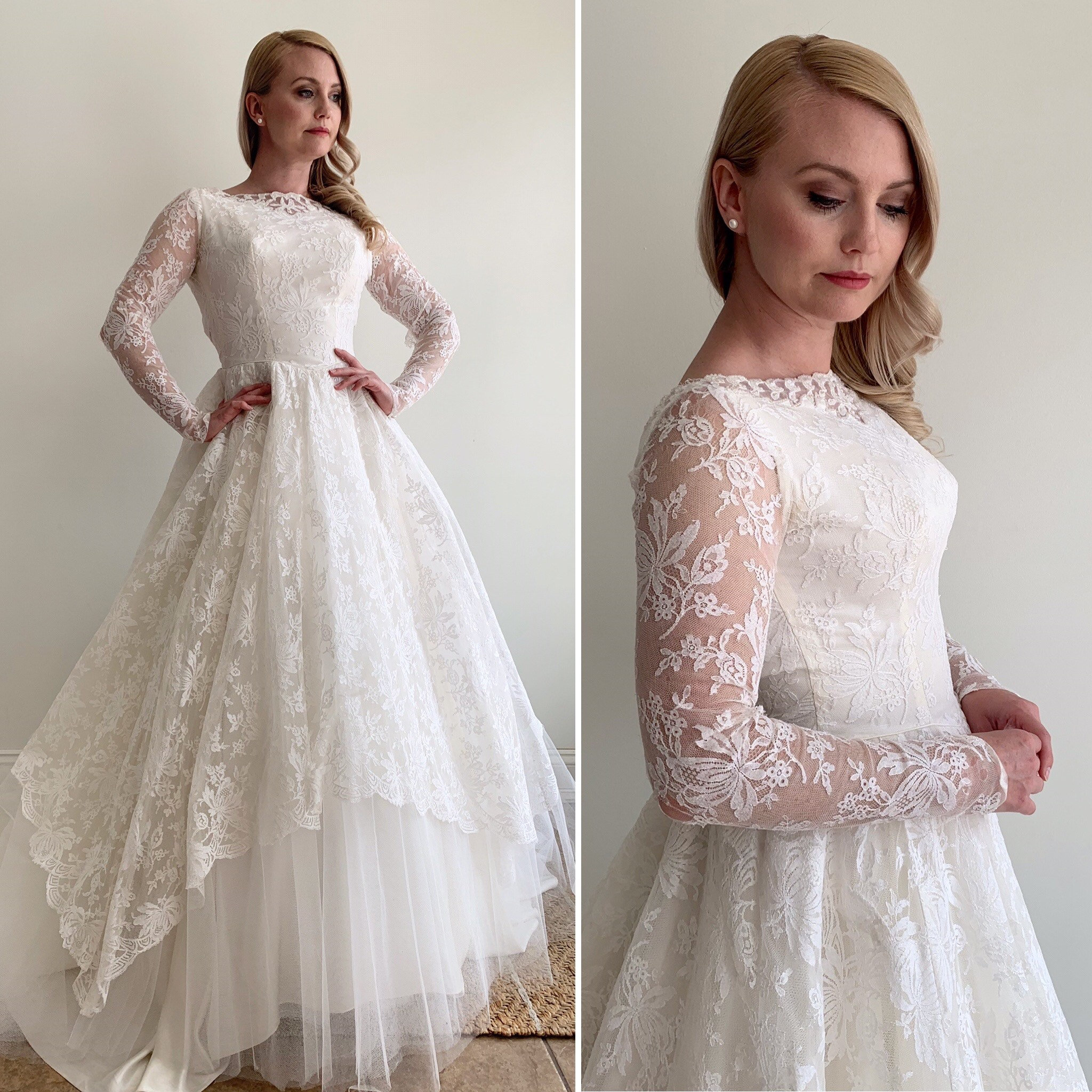Vintage 1950 S Boat Neck Tulle Wedding Dress With Lace And Beading Details Etsy